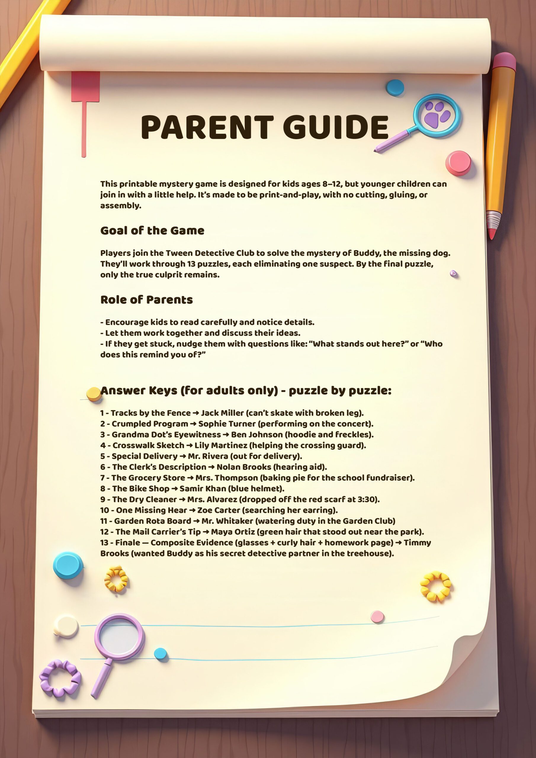 Can your team uncover all the clues and reunite Buddy with his family before time runs out? The neighborhood mystery awaits!