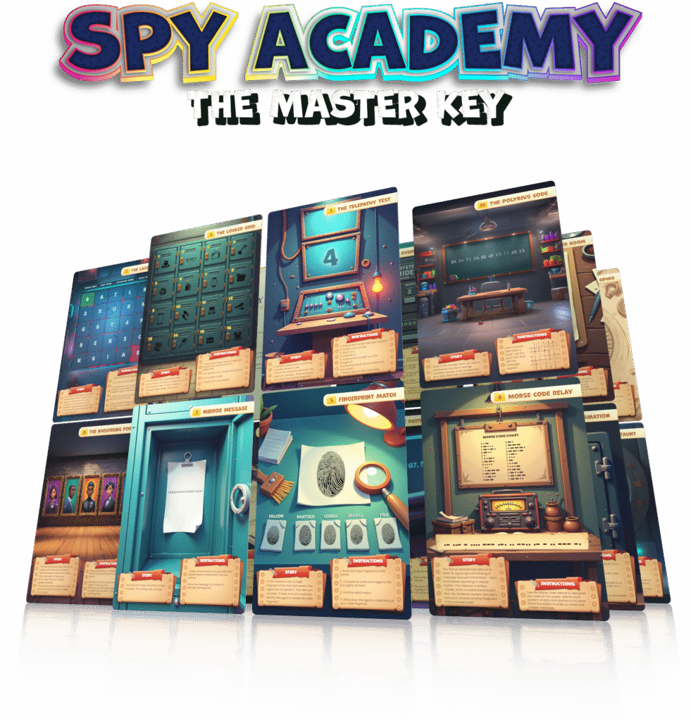 A security breach has locked down Spy Academy, and only one cadet can investigate. Each puzzle reveals part of the override code, sharpening logic and deduction as they race to recover the stolen Master Key.