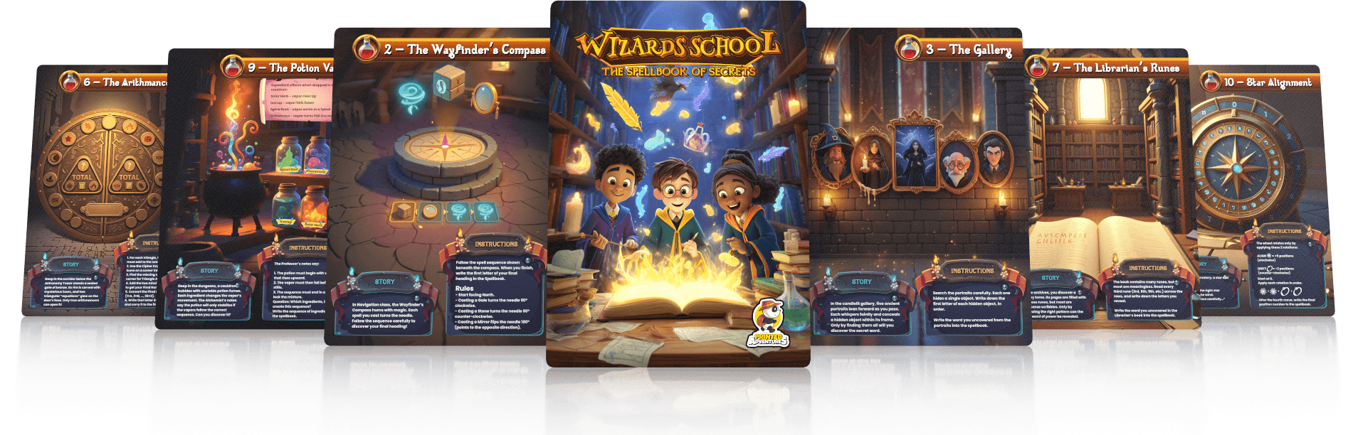 From ancient runes to potion recipes, each challenge strengthens reasoning, sequencing, and problem-solving skills.